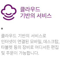 TAPS와 귀사의 인쇄물관련 정보와 디자인을 연동하면 필요한 인쇄물상품과 디자인을 클라우드 환경에서 주문 및 관리가 가능하여 디자인작업 시간과 제작비용을 대폭 절감할 수 있습니다.